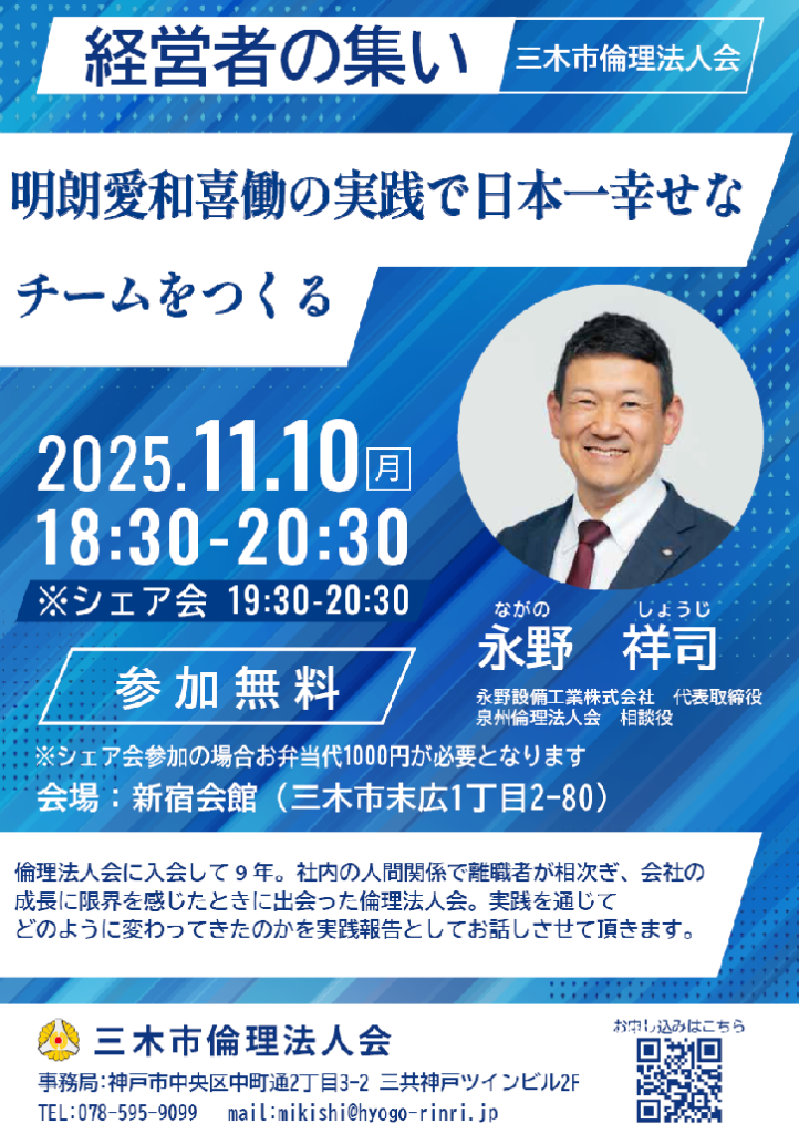 > 三木市倫理法人会 経営者の集い2025/11/10(月)
