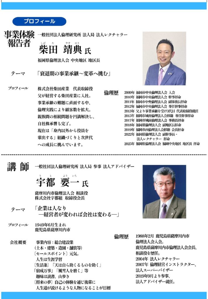 企業は人なり~経営者が変われば会社は変わる~講師:宇都 要一(一社)倫理研究所 法人局 参事 法人アドバイザー