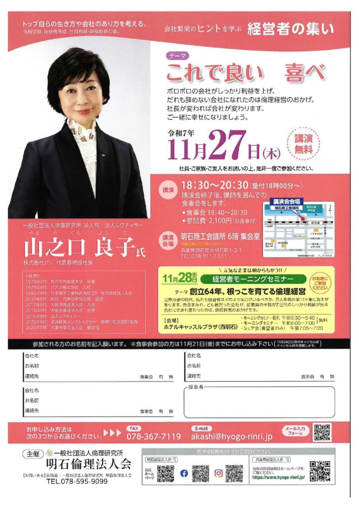山之口 良子(大東市 相談役 法人レクチャラー・倫理経営インストラクター)